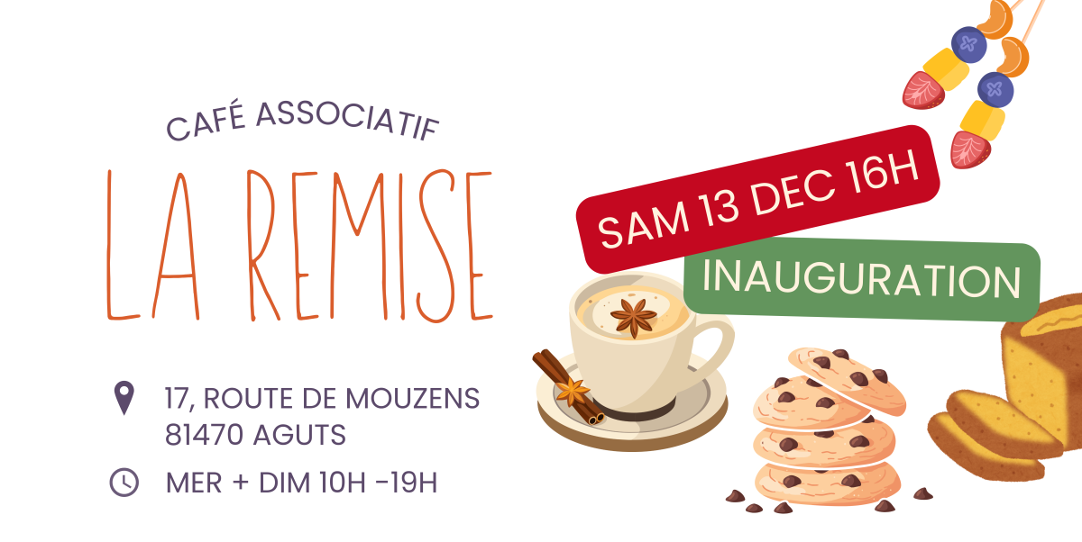 La Remise propose des boissons ainsi que des gâteaux, tartes, salades et soupes. La carte varie en fonction des saisons et de l'humeur des bénévoles, car tout est fait maison avec des produits frais.